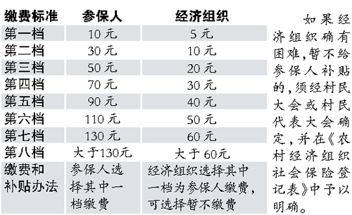 昨天,廣州市社保局印發了《廣州市新型農村社會養老保險參保登記和待遇申領辦法》。根據辦法,廣州市新型農村社會養老保險繳費標準分為8個檔次,參保人可選擇其中一檔繳費,最低可繳10元,最高可大于130元。